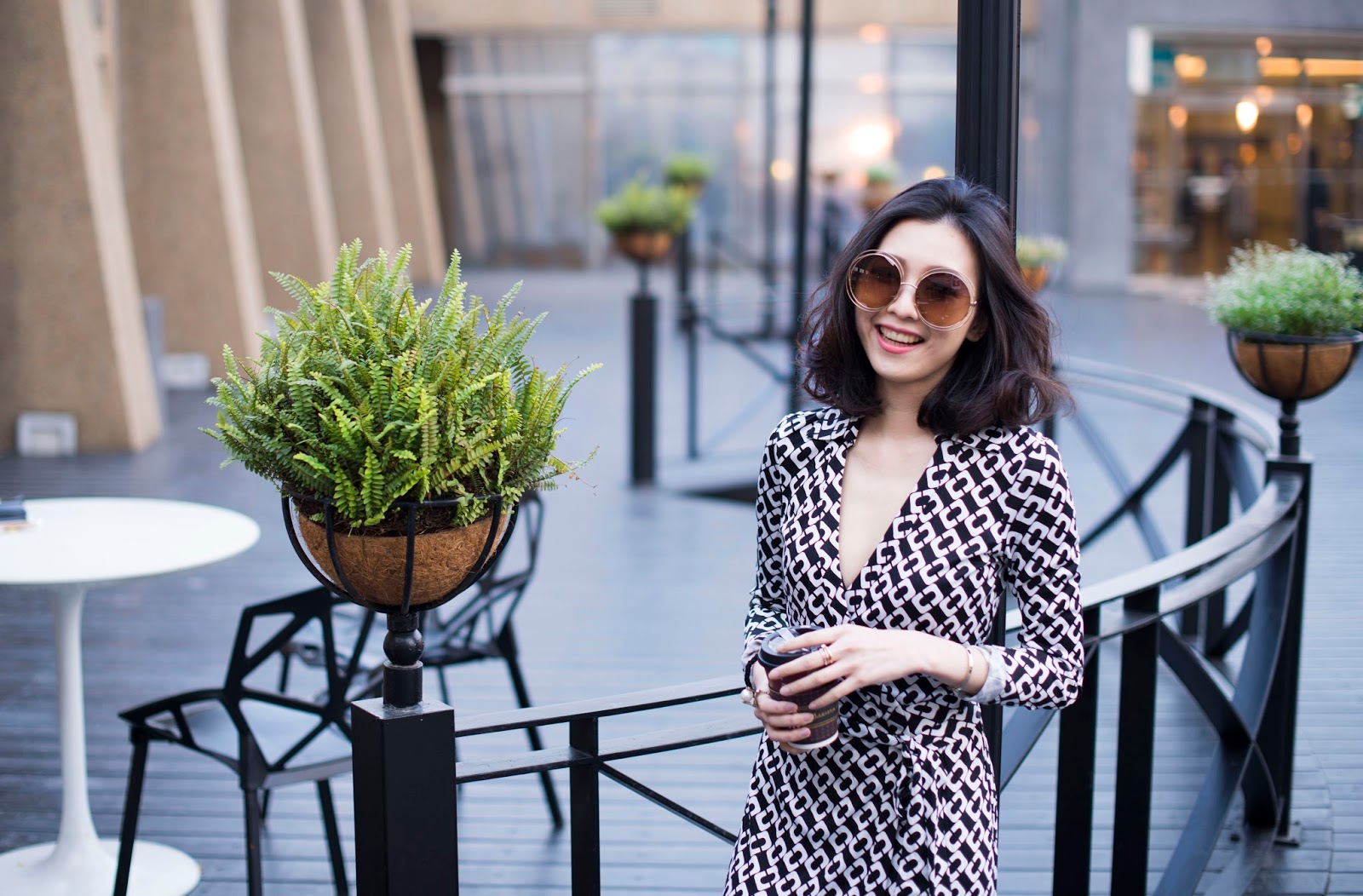 我真是超。爱 Wrap Dress 的!整个就是非常浓厚的复古味。配上今天的 Chloe 复古墨镜一整个适合。 DVF 不遗余力将复古的城市女郎精神灌注在品牌的时尚理念里。